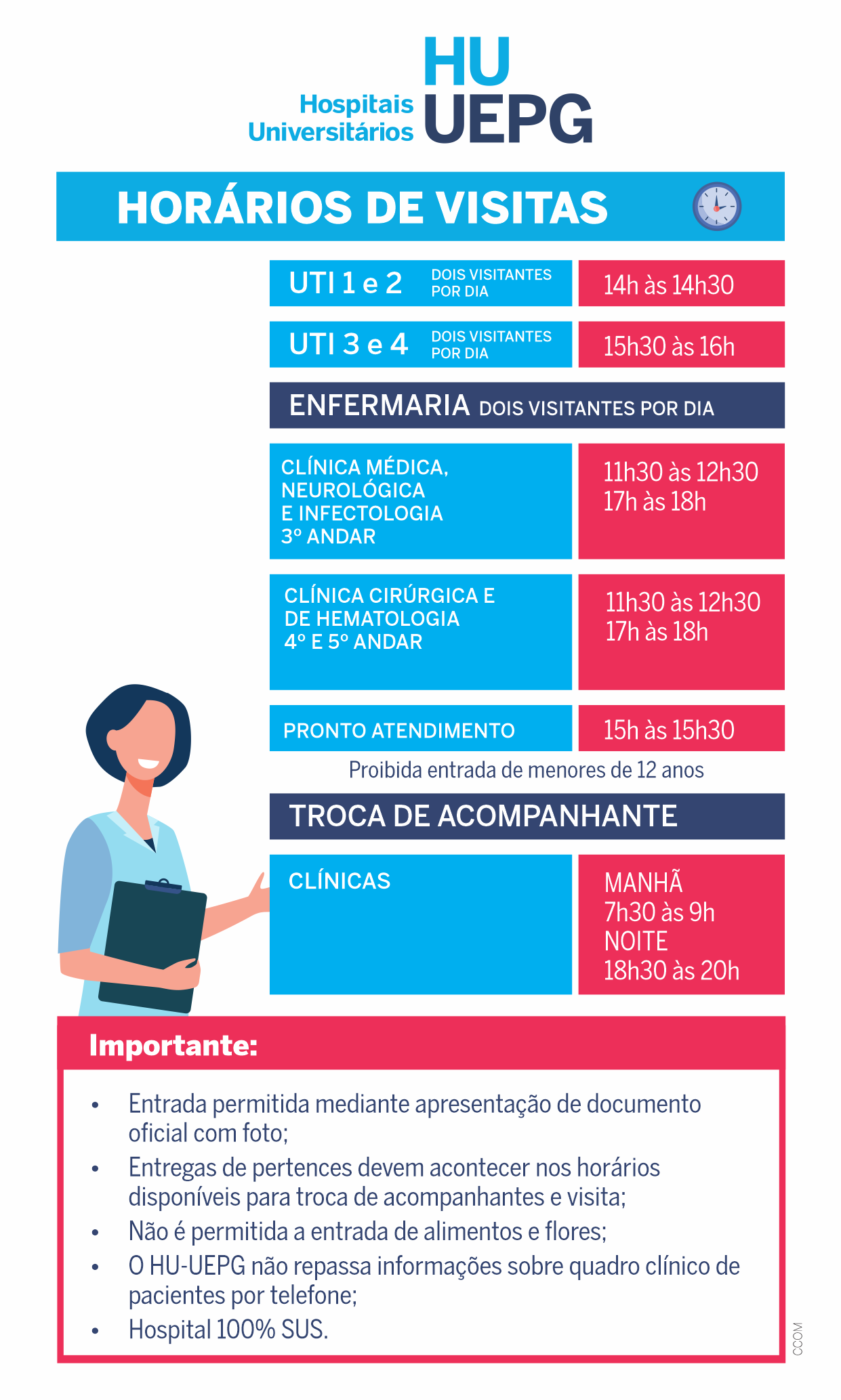 – Informações sobre o quadro clínico do paciente, exames os cirurgias que o paciente venha a realizar, dia provável da alta devem ser obtidos com o próprio paciente se não estiver impossibilitado ou nos horários de visita com o médico responsável;
