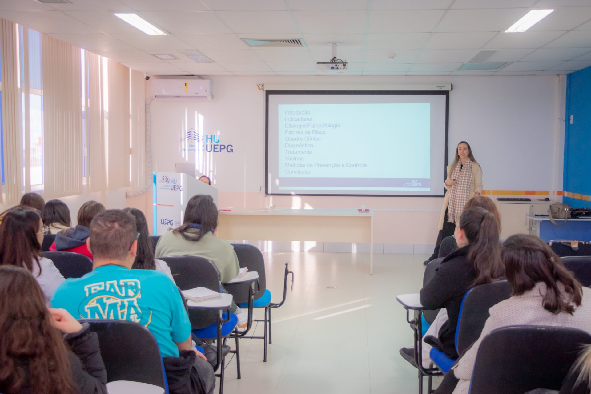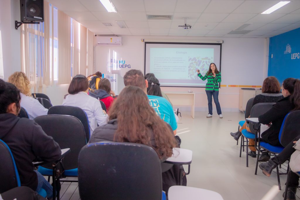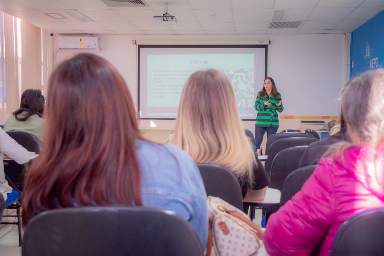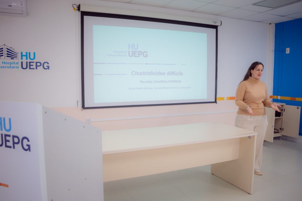 O Hospital Universitário geral da Universidade Estadual de Ponta Grossa (HU-UEPG) foi palco da reunião científica mensal de julho da Associação Paranaense de Controle de Infecção Hospitalar (Aparcih) no último dia 18. Com a presença de profissionais de todo o Paraná, presencialmente no auditório do HU e de maneira remota, foi discutida a prevenção do Clostridioides difficile, que é a principal causa de diarreia relacionada a assistência à saúde e um grande desafio.
